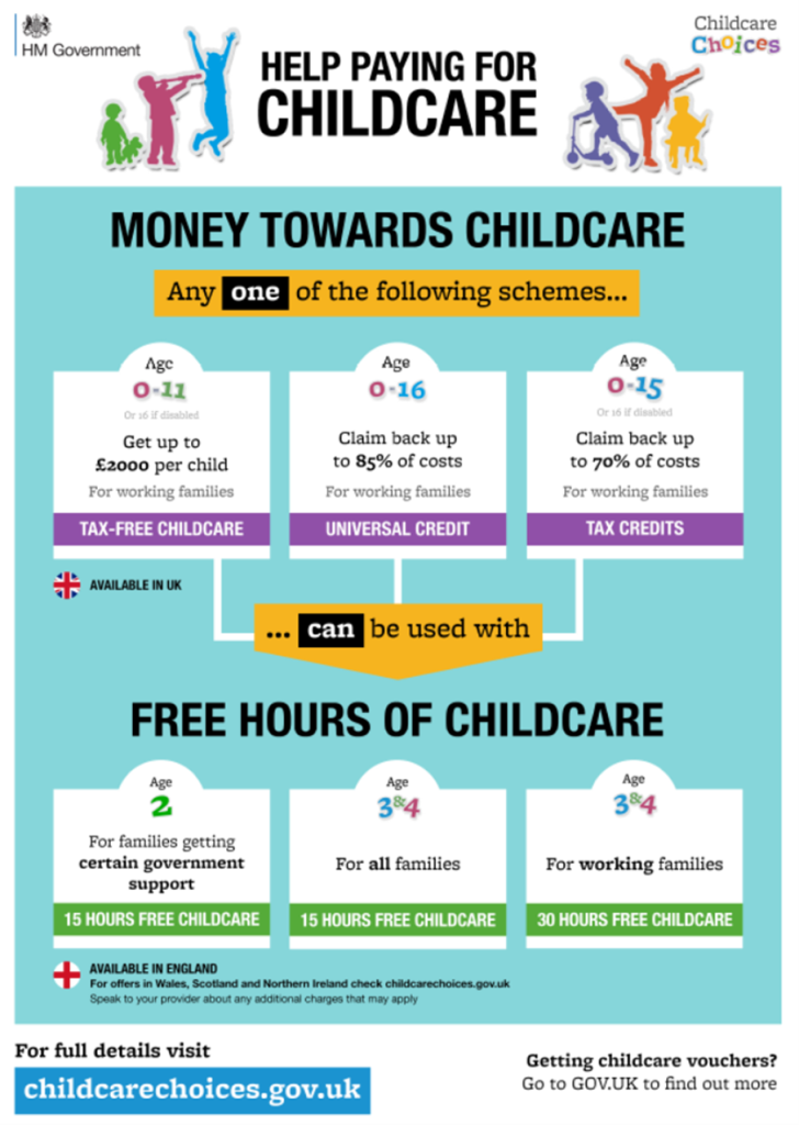 Financial support is available to families that are eligible. This can range from funding for sessions to getting childcare tax free. Lots of information about what is available to you can be found at www.childcarechoices.gov.uk